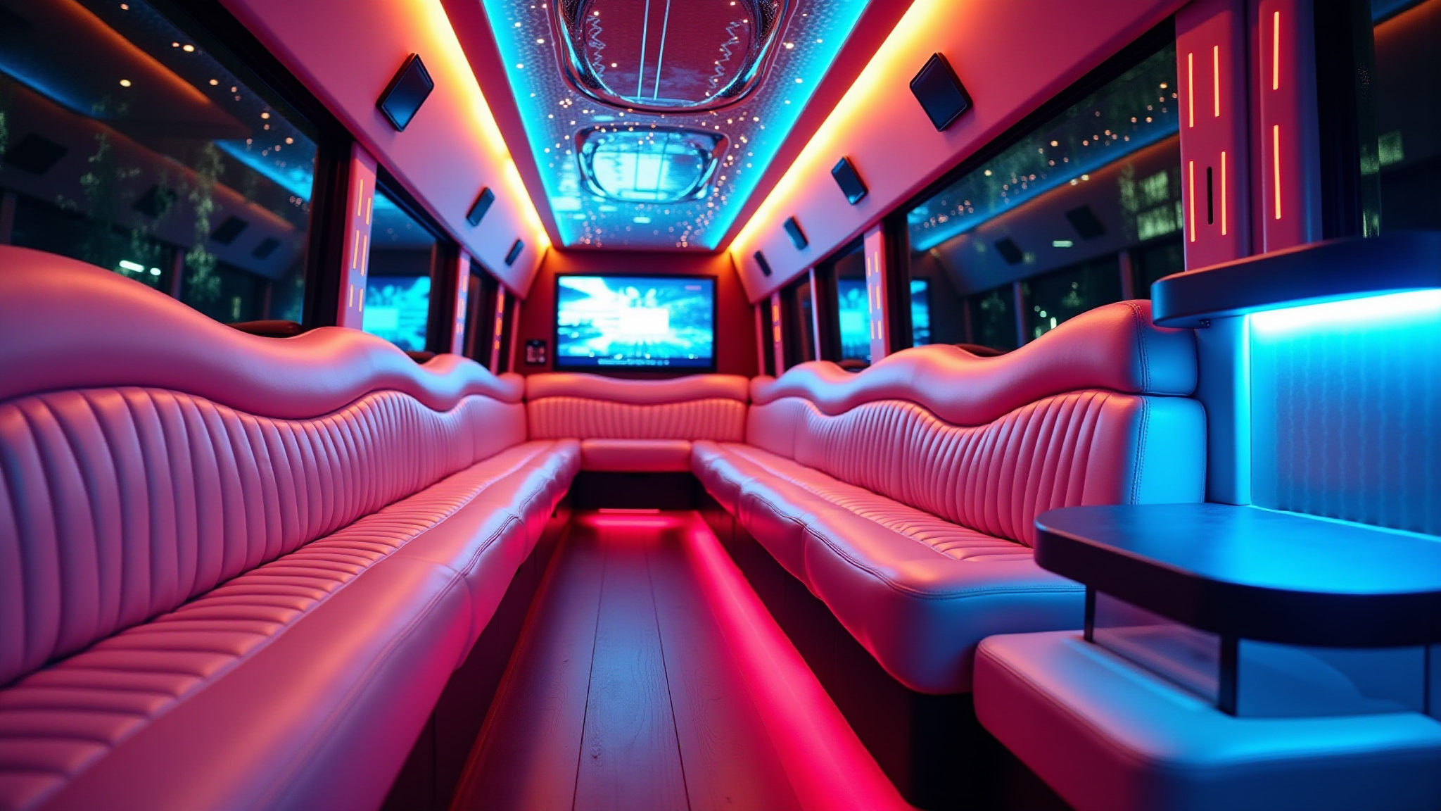 We provide LED lights and flat-screen TVs installed to enhance your experience, ensuring the music and ambiance keep you entertained throughout the journey.
